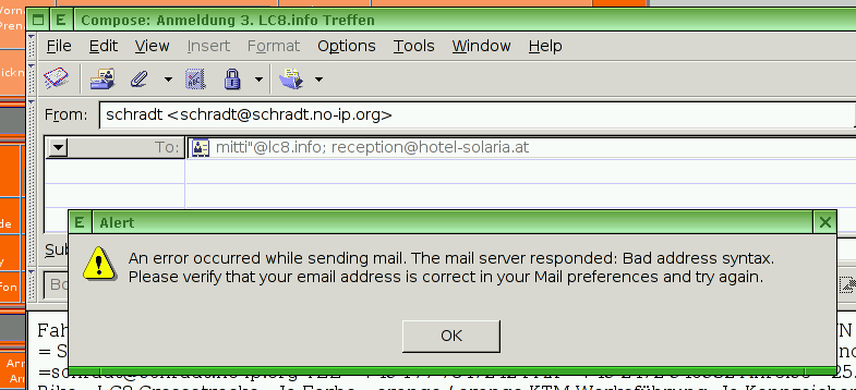 mein Internet Explorer funzelt ja problemlos, aber dieses miese Outlook Express benutze ich sonst nicht. Dafür ist mir das Prog gerade zweimal beim Senden der Anmeldung abgek...