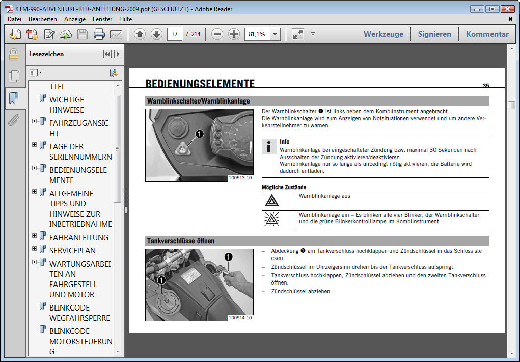 Bei meiner Adventure 990, Bj. 2010 ist mir heute aufgefallen, daß der Schalter für die Warnblinkanlage ständig leuchtet.