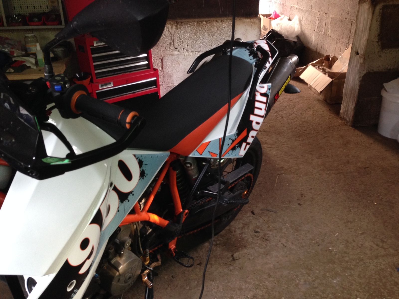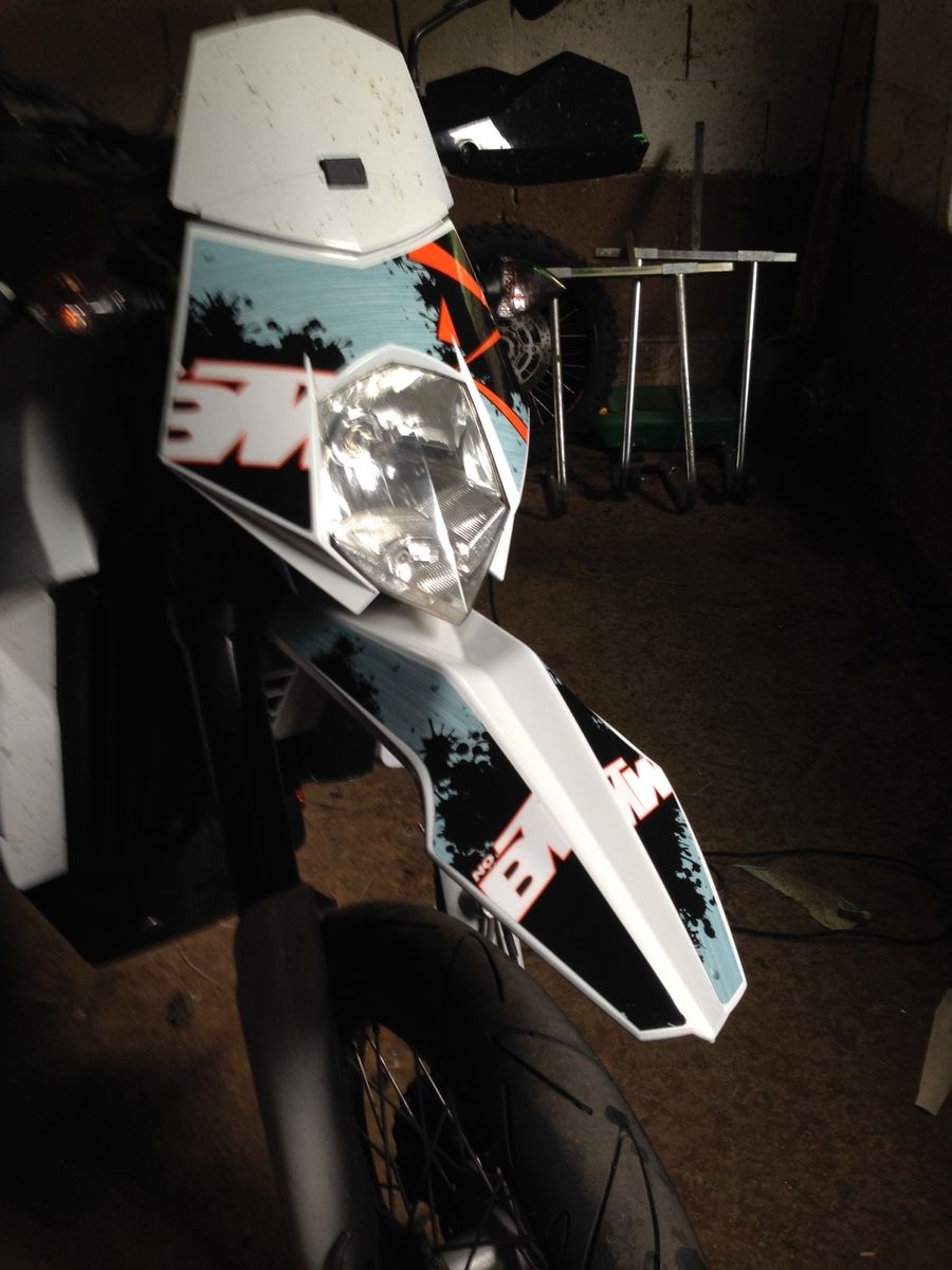 Nachdem ich stundenlang das Web durchsucht habe und außer den bekannten, fertig käuflichen aber nicht gewünschten Produkten gelandet bin, kontaktierte ich den einzigen DE-Anbieter mit Dekorsätzen für KTM 2 Zylinder Modellen.