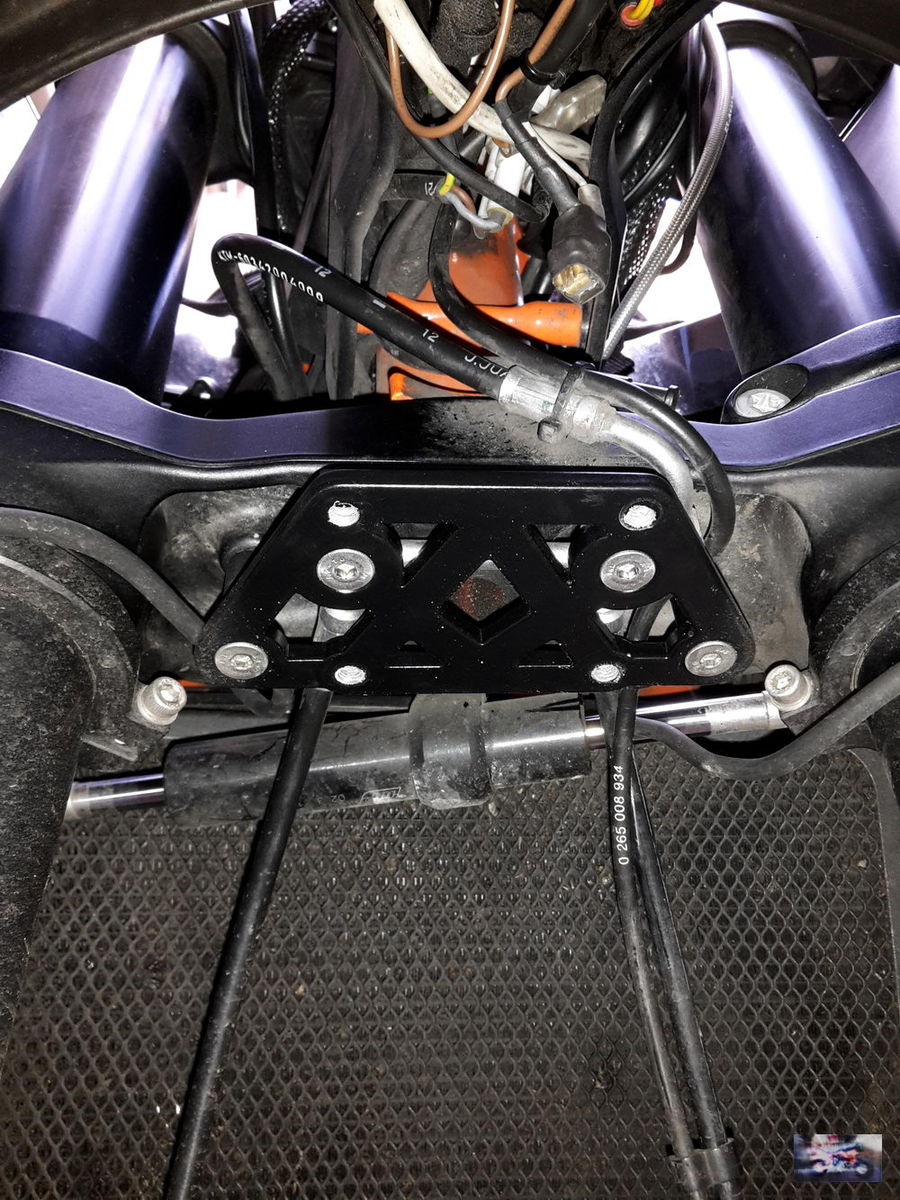 5. Die 25mm Buchsen (eigentlich ja 10+15mm Buchsen) kommen an die Gabelbrücke/ oder breitester Teil der Adapterplatte, da wo die Eigentliche Kunststoffplatte befestigt war.