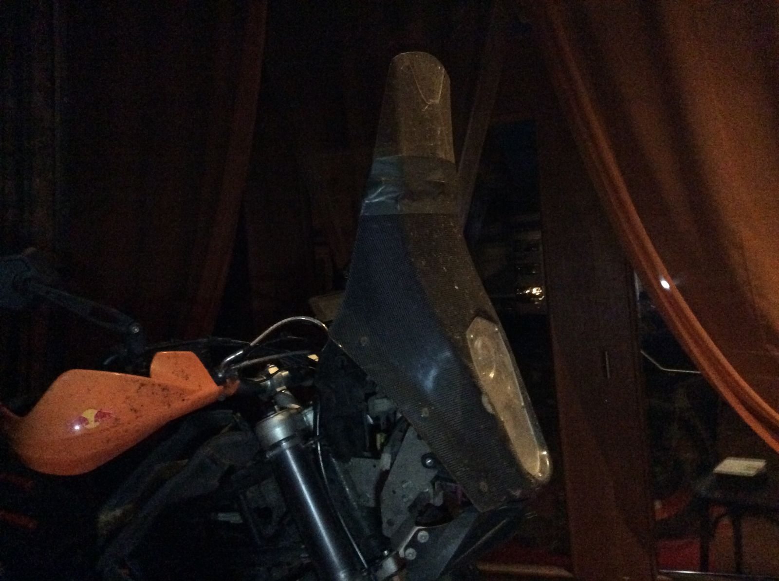 Ist leider dann auf der ligurischen kammstrasse bei einem umfaller zerbrochen. Deswegen das Panzertape. Hält seit dem 6000km. Aber es ist ein absoluter Traum dahinter zu sitzen. Je schneller man fährt, desto ruhiger wird es und man kann die Akras viel besser hören.