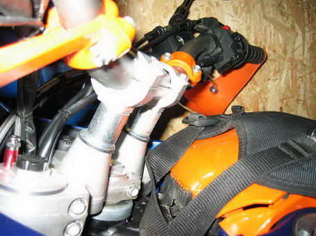 Die KTM Lenkererhöhung hat in den Alu-Buchsen noch ein durchgehendes Stahlrohr und dürfte damit wesendlich stabiler sein. Jedenfalls hab ich die Konstruktion bisher nur minimal verbiegen können und so ziemlich alles drum herum war schonmal "Schrott"