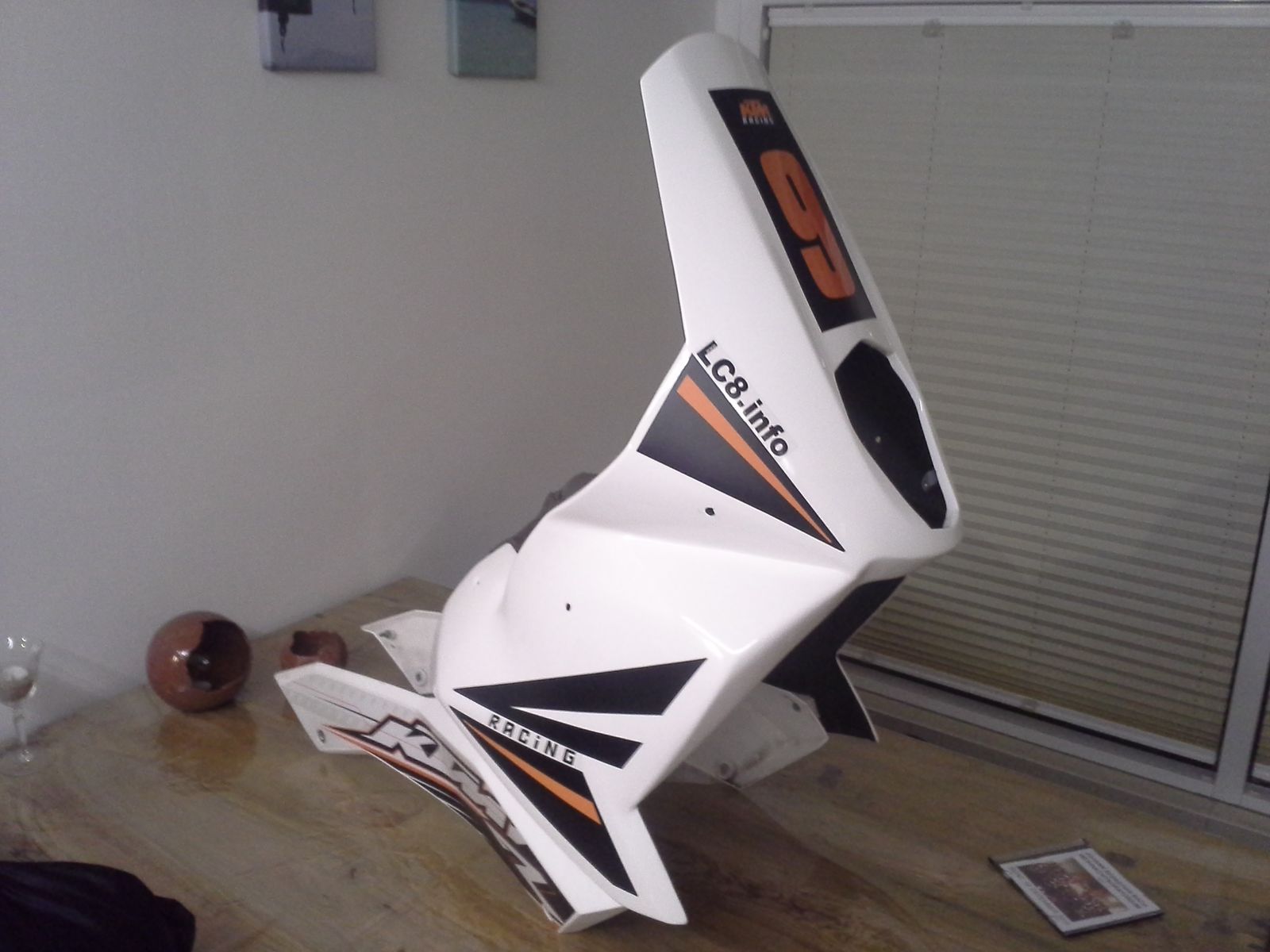 Wenn du die Farbe weiß komplett durchziehen möchtest: die 2014er 690er Enduro R hat einen weißen Kotflügel und ein weißes Heck, würde auch von den Dekors gut zu deinem Design passen.