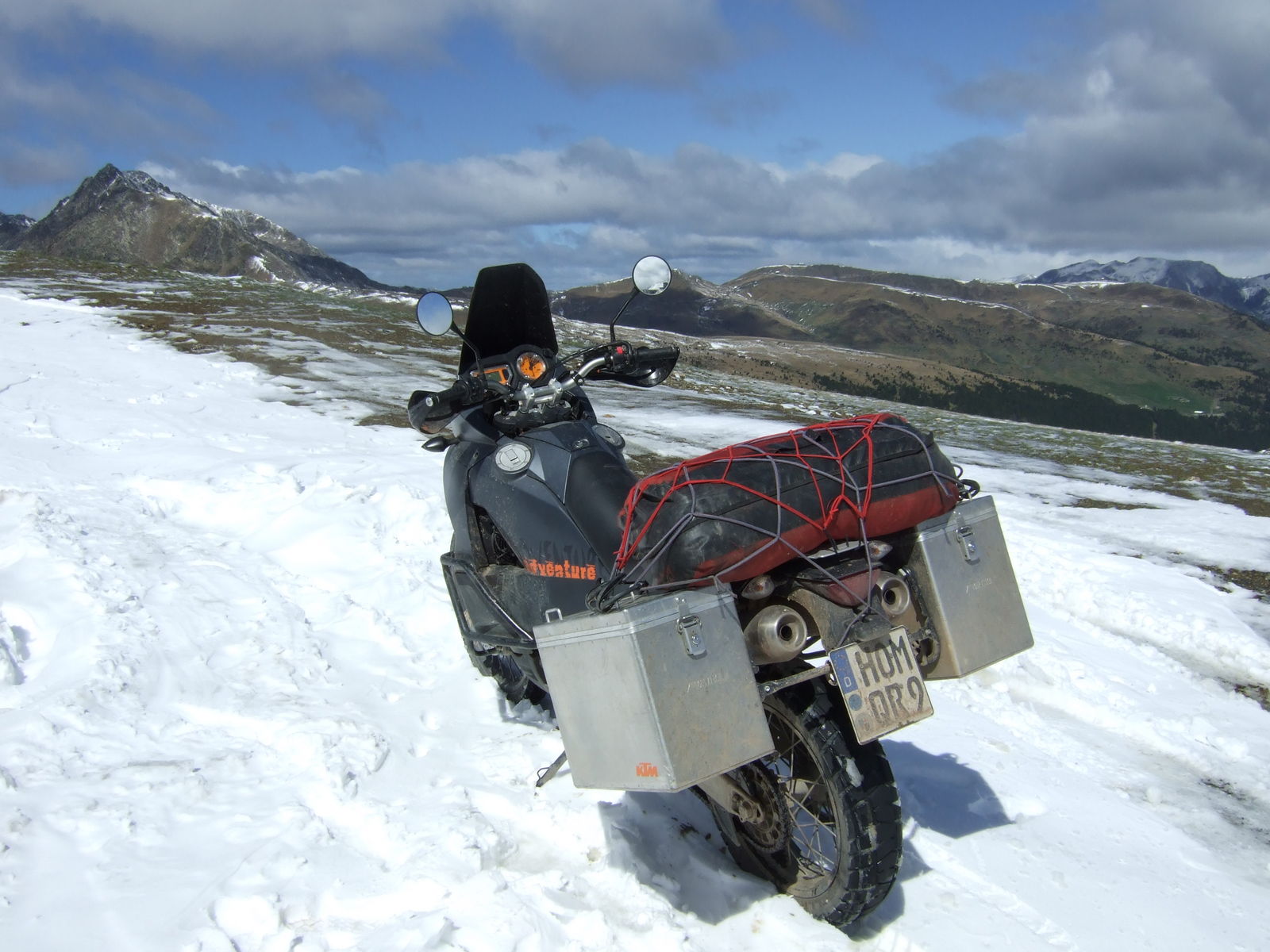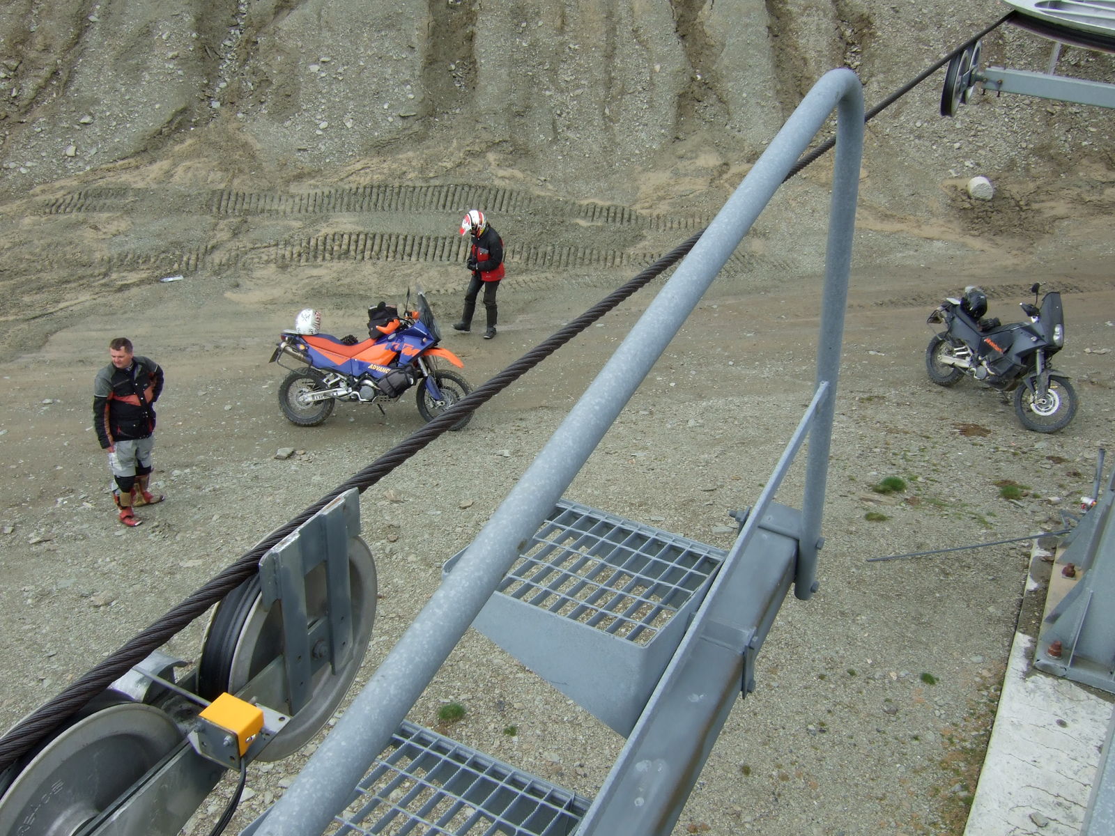 Ja, das war unser Weichei-Tag ... mit dem Lift nach oben gefahren, die Moppeds für's Foto ausgeladen, ein wenig in Pfützen geplanscht und wieder mit dem Lift runter ...