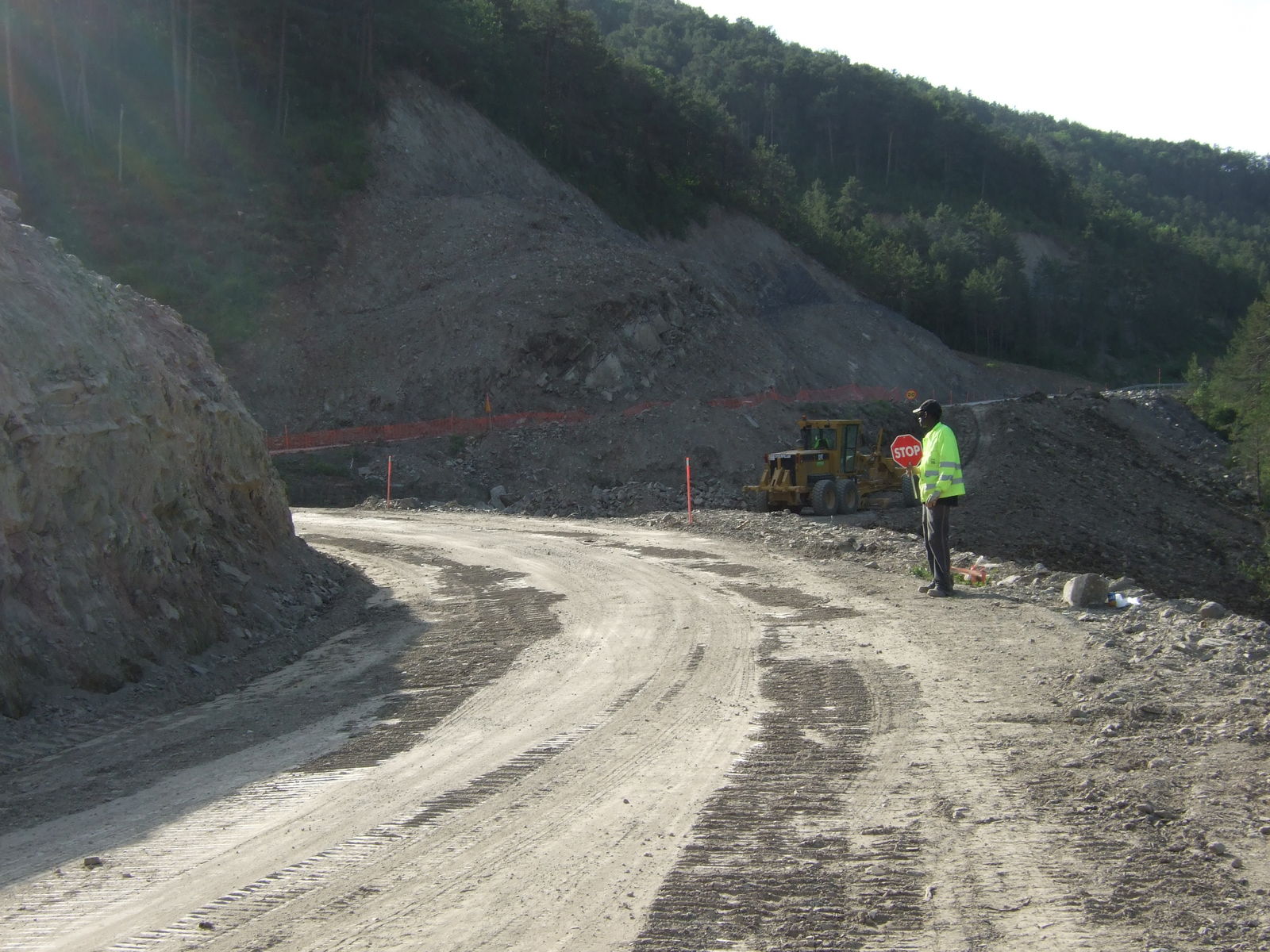Als es nach einer zeitweilig abgesperrten Unfallstelle (Viertelstunde verwartet) mal wieder zu regnen anfing, suchte ich an einem kleinen überdachten Stand Schutz. Ich dachte, es gäbe, wie so oft, irgendwelche geologischen Informationen für interessierte Kulturtouristen, aber dies hier war dramatischer: