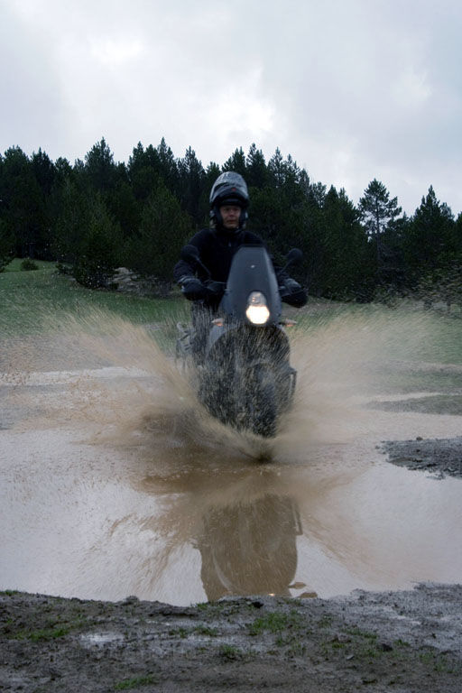 Bei der Durchfahrt ist mir das Wasser über die Italoscheibe hinweg in großem Schwall auf die Brust und in den Schoß geschwappt. Überraschung!