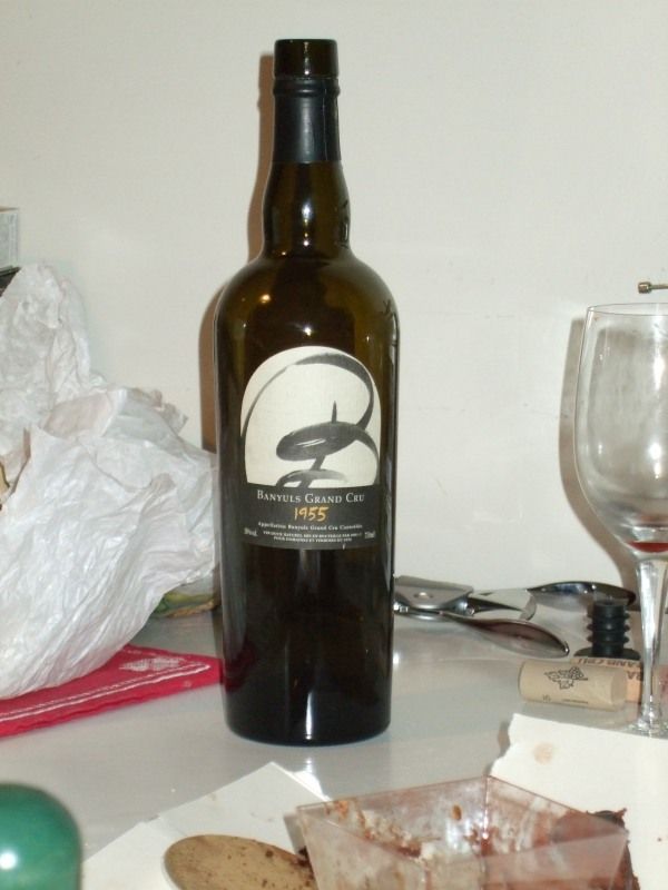 Am Abschiedsabend überraschten uns unsere Gastgeber mit einem Verwöhnessen: Ein 1955er (!) Banyuls Grand Cru, zuerst ein Gläschen pur, dann ein Gläschen mit blauem Käase (Roquefort, ...), dann ein Gläschen mit schwerem, sehr süßen Schokoladenkuchen. Spannend, der excellente Wein, recht süß, ähnlich einem guten Port, reichhaltig im Aroma, veränderte bei jeder Kombination seinen Eindruck - und blieb immer herausragend gut.