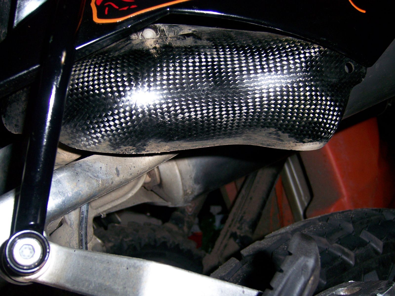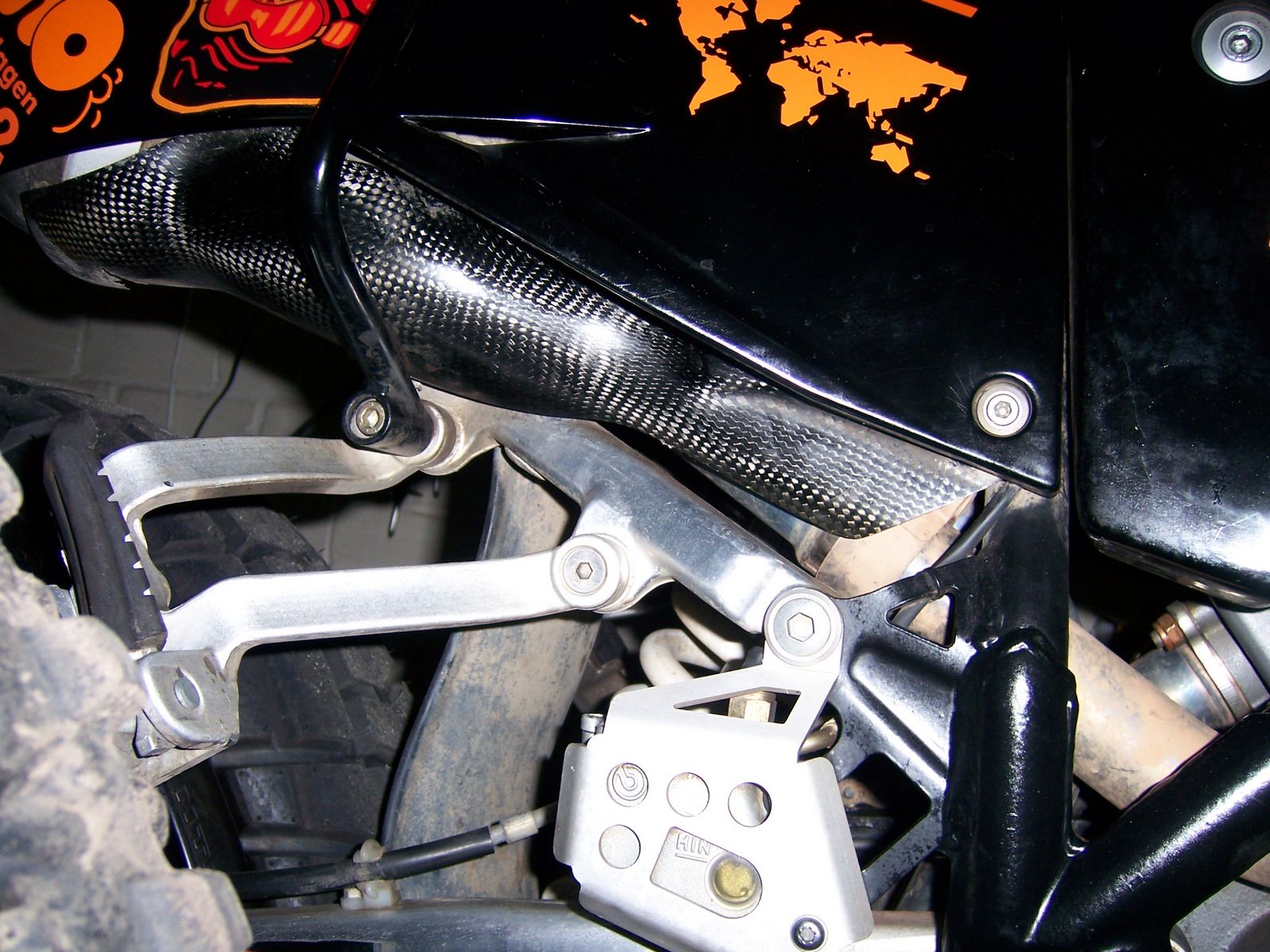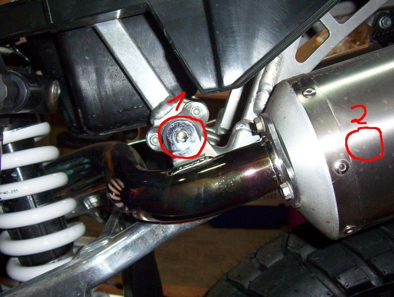 | Fahrtrichtung rechts wird mit der Seitendeckelschraube befstigt und der auspuffhalterung über der soziusraste |