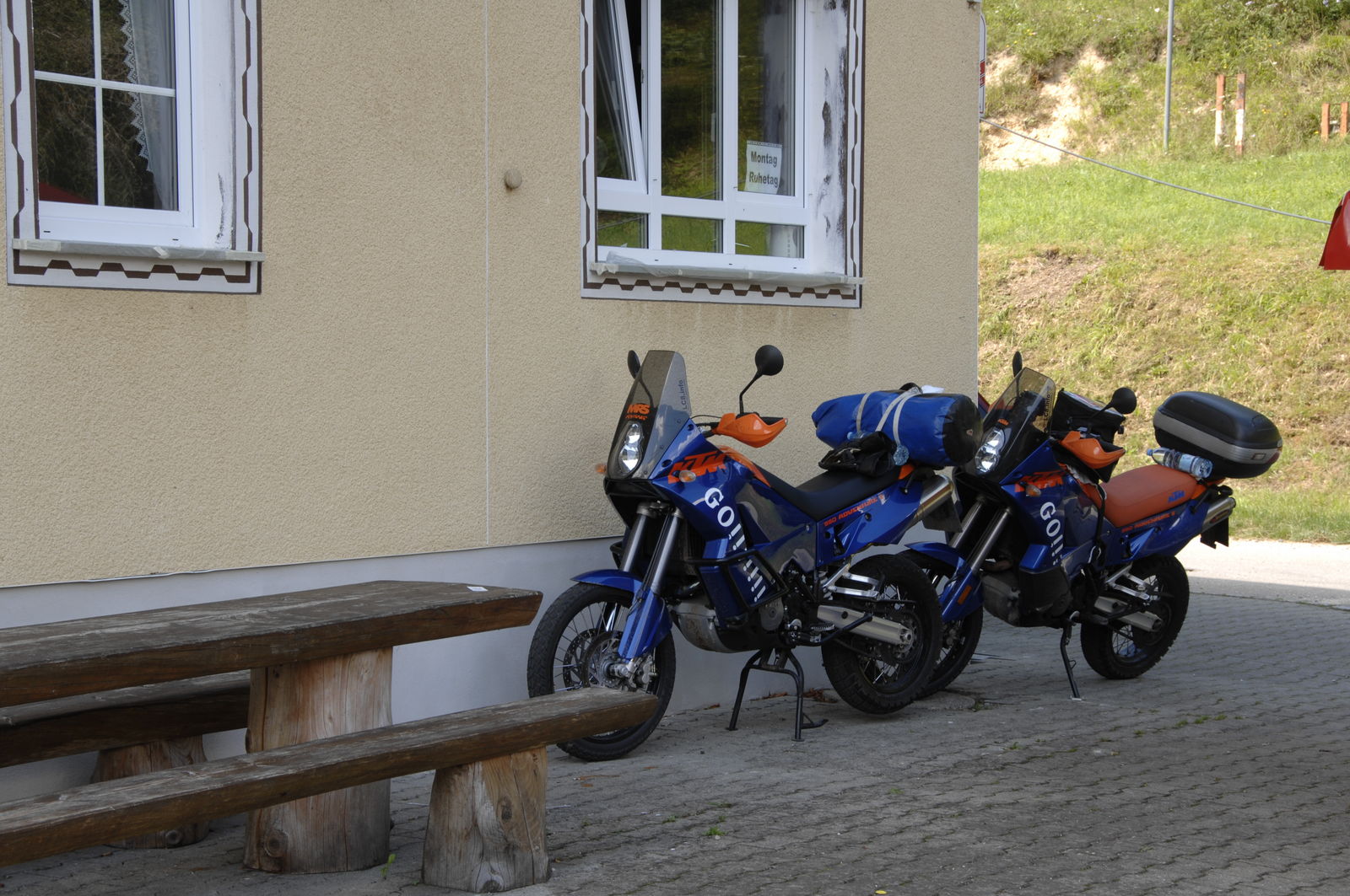 Das stimmt, die Breite des KTM/TT-Trägers nervt schon manchmal. Besonders in Italien, wo einem dann die Scooter mit den TopCases um die Ohren fahren. Da denk ich doch tatsächlich über den Verkauf meiner Koffer nach...