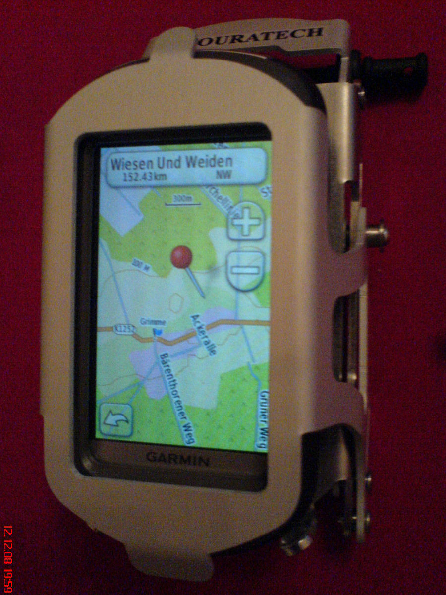 so, Citynavigator-Karten problemlos aufgespielt, TT-Käfig dran und kurze Probefahrt: es strahlen die Augen, wie wenn ein kleines Kind ein neues Spielzeug bekommt !!! es taugt, auch im Stehen gut ablesbar, Pfeile da, wie sie sein müssen, mit Handschuh und TT-Stift bedienbar, Sonneneinstrahlung und Dauertest werden sich zeigen.