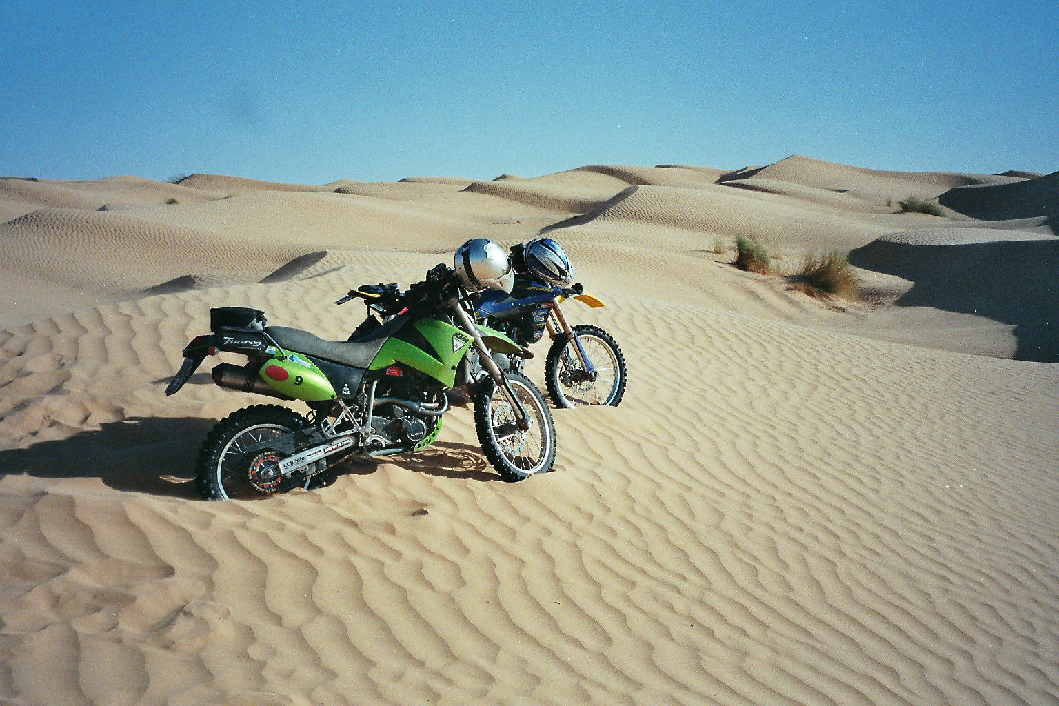 ich weiß bloß, dass der andere LC4-Fahrer seine muckernde Kiste, Sand im Vergaser, mind. dreimal zerlegt, nach dem schon der Helm vor Wut durch die Wüste flog, ins Mittelmeer schmeißen wollte. Hat er dann auch gemacht, d. h. die ist schon verkauft und jetzt fährt er Aprilia. Das lag meines erachtens alles nur an sehr porösen Schutzgummis am DelOrtho. Über die Wüstentauglichkeit der LC8 wurde nicht weiter geredet, da auf dieser Tour schon die LC4 als Dickschiff galt