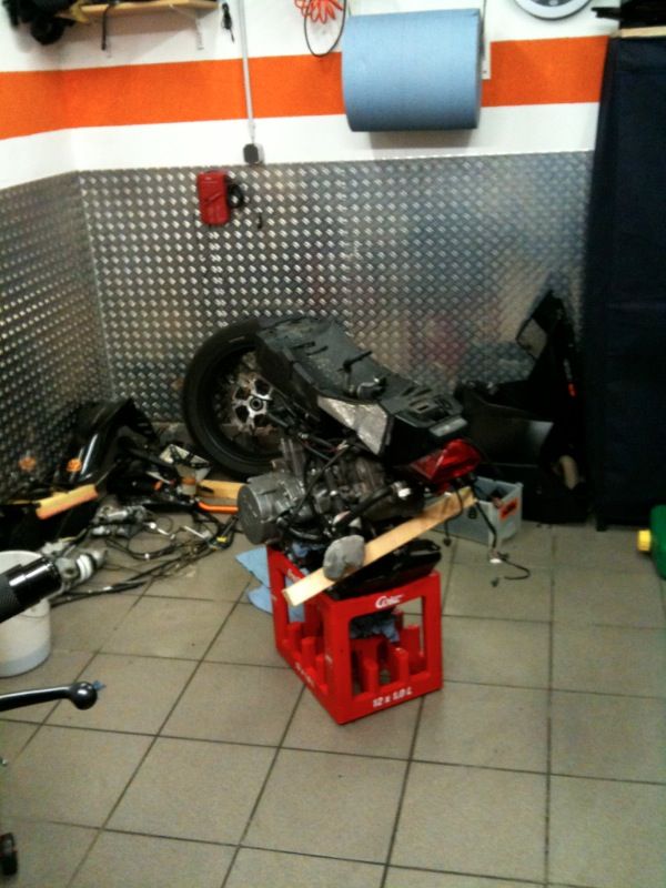 Zum Motor rein- und rausnehmen habe ich einen Enduro-Ständer benutzt, ging auch super.