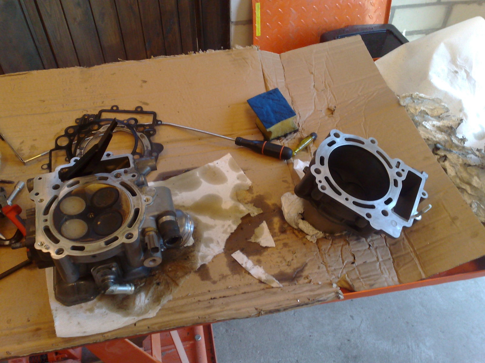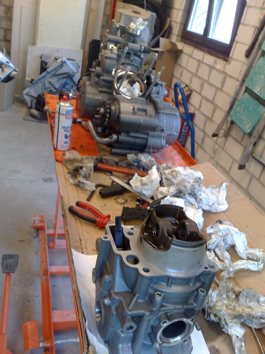 Hab den ganzen Mist auch gerade hinter mir (Zylinderkopfdichtungen), geht mit dem KTM Werkstatthandbuch aber ganz gut. Warum habt Ihr auch die Front und Auspuffanlage abgebaut?