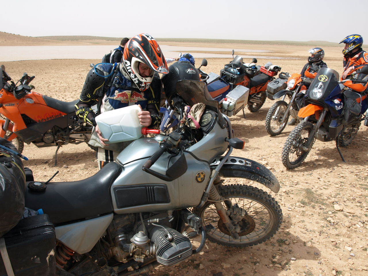 PPS Kanister sind für eine DR 650 die schon einen 42Liter Tank hat... ... Verbrauch ist im Tiefsand aber enorm.