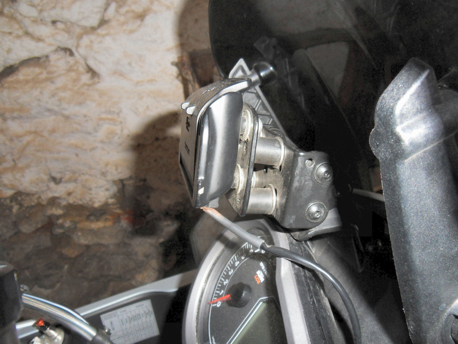 wenn du dir meine ersten Bilder anschaust. Ich habe die original Navihalterung von KTM & habe einfach die Platte von TomTom mit Vibrationsschrauben (glaub die Dinger heißen so) verschraubt & drauf des Navi. Hält bis dato & das ablesen vom Tacho ist kein Problem.