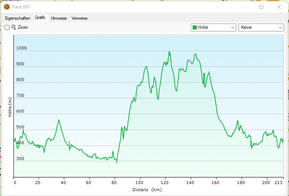Schnitt pro Stunde auf 213Km: 59Kmh, kein Meter AB