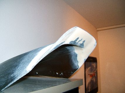 Nachdem keine wirkliche Lösung für eine "Frontscheibe mit Flip" in Aussicht ist, habe ich mich entschieden selber zu handeln. Ich habe wie auch Andere hier im Forum zuerst die Scheibe mit dem Heissluftföhn in die gewünschte Form gebogen. Dies sah dann so schei...e aus, dass ich schon aufgeben wollte. Ich schliff mit Schleifpapier und Dremel die gröbsten Unebenheiten weg und begann danach die Scheibe mit Polyesterspachtel zu füllen und in die endgültige Form zu bringen. Dazu sind mehrere Durchgänge nötig - und immer wieder schön brav schleiffen