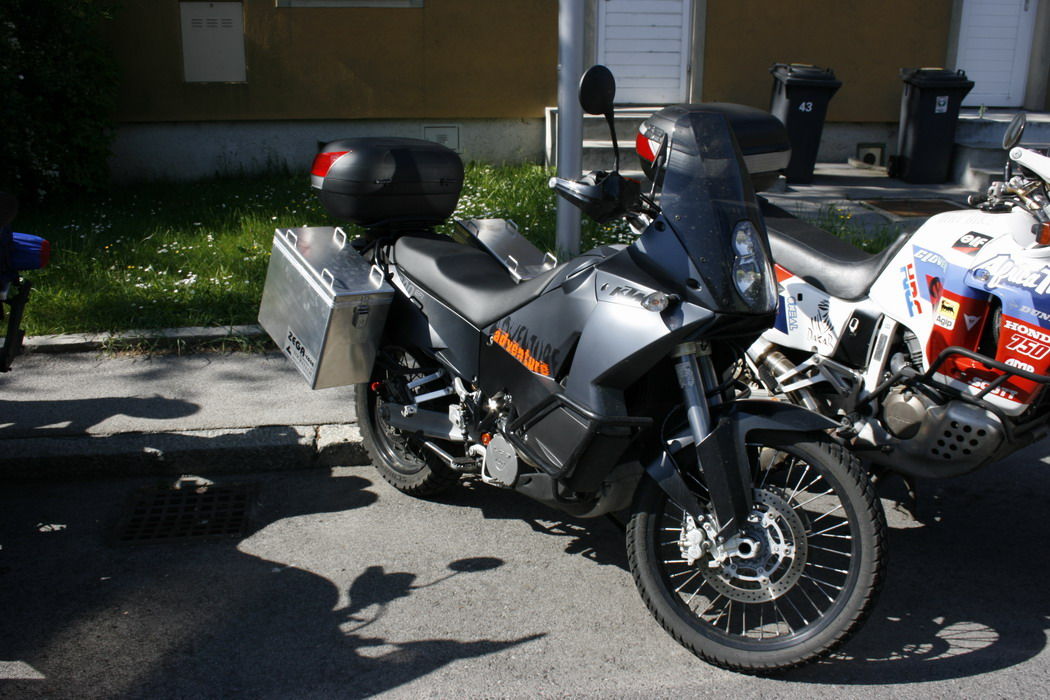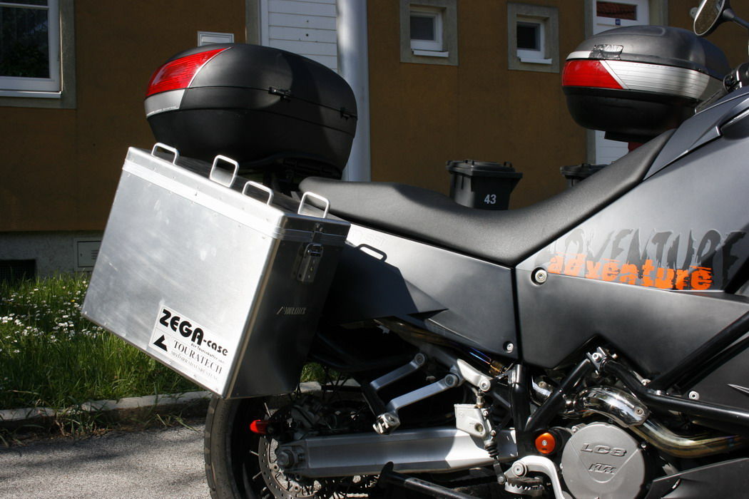 Endlich wurden dieses Wochenende meine Koffer montiert (haben erst die Halterungsschrauben auf den Koffer montieren müßen) und wie versprochen ein/zwei Foto davon. In Island fahr ich dann ohne Topcase dafür mit Ortliebwurst hinten drauf.