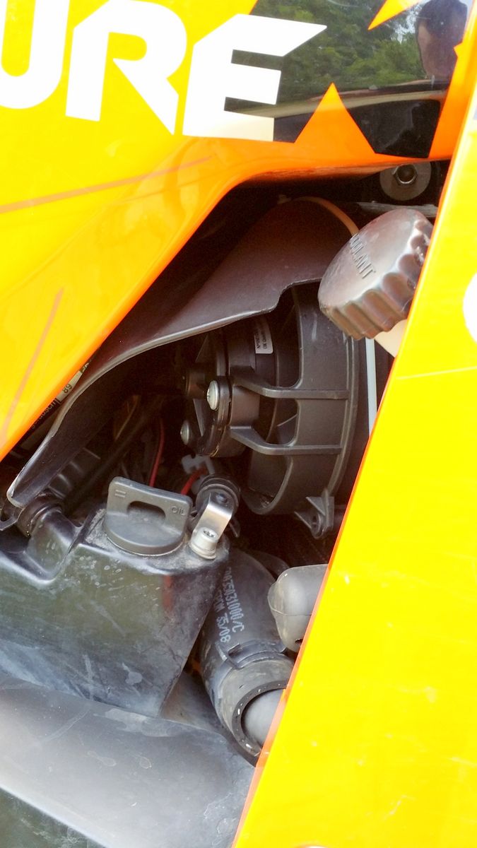 Mal sehen, was ich jetzt als Luftableiter anbringe.......Hitzeschutzmatte oder KTM-Abweiser......mal sehen.
