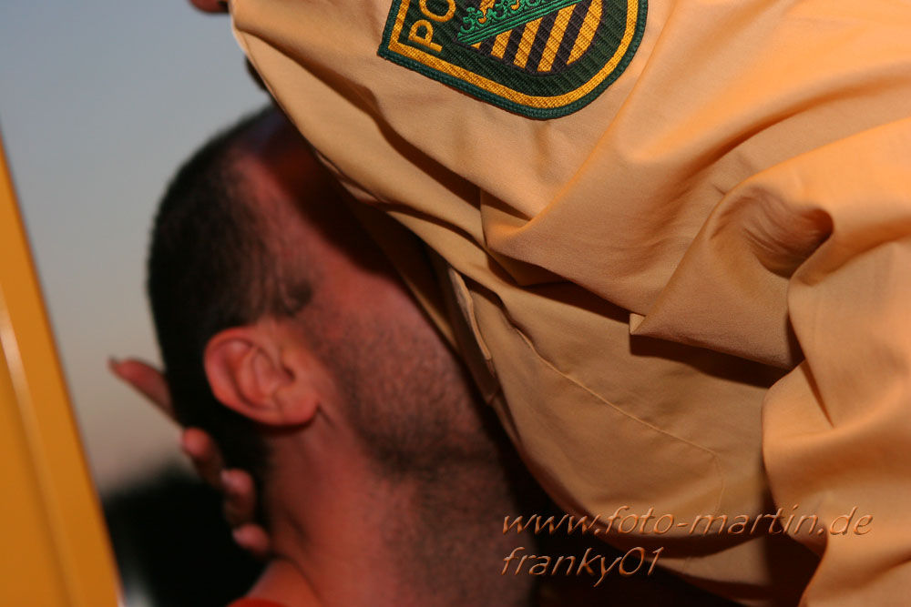 Ollo schaffte es, daß die Rennleitung ins orange Lager wechselte , dazu mußten einige "Umkleidungs-Aktionen" vorgenommen werden, sozusagen Kleidertausch