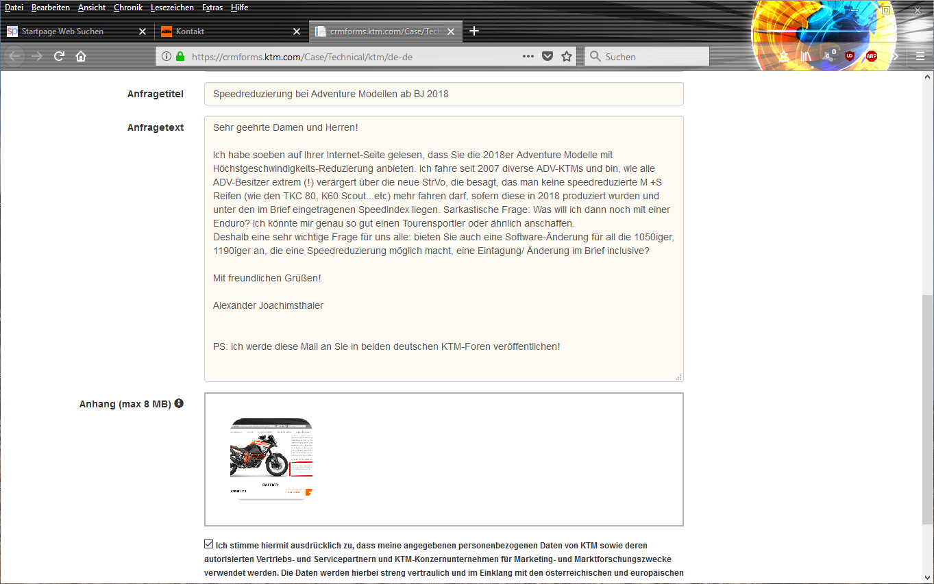 Meine Email an KTM.de............. |