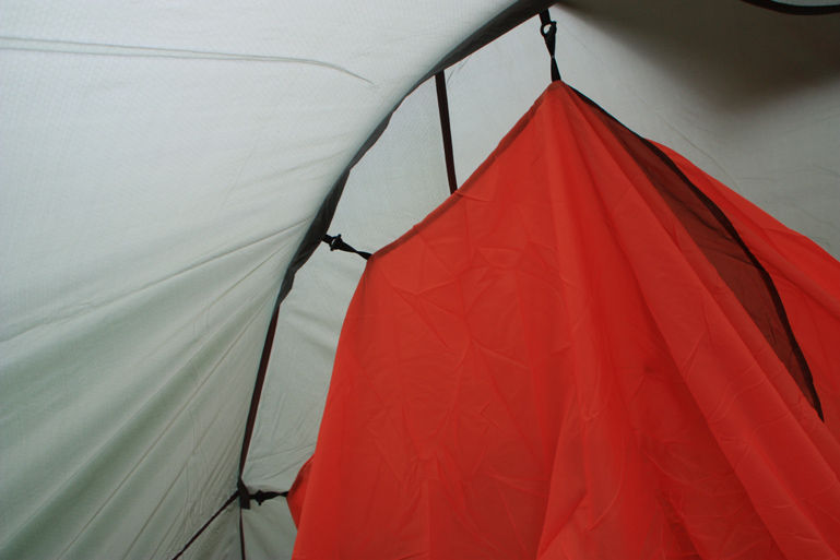Das Zeltgestänge ist so konstruiert das egal ob Innen- oder Aussenzelt eingehängt werden das Ding hinterher steht.