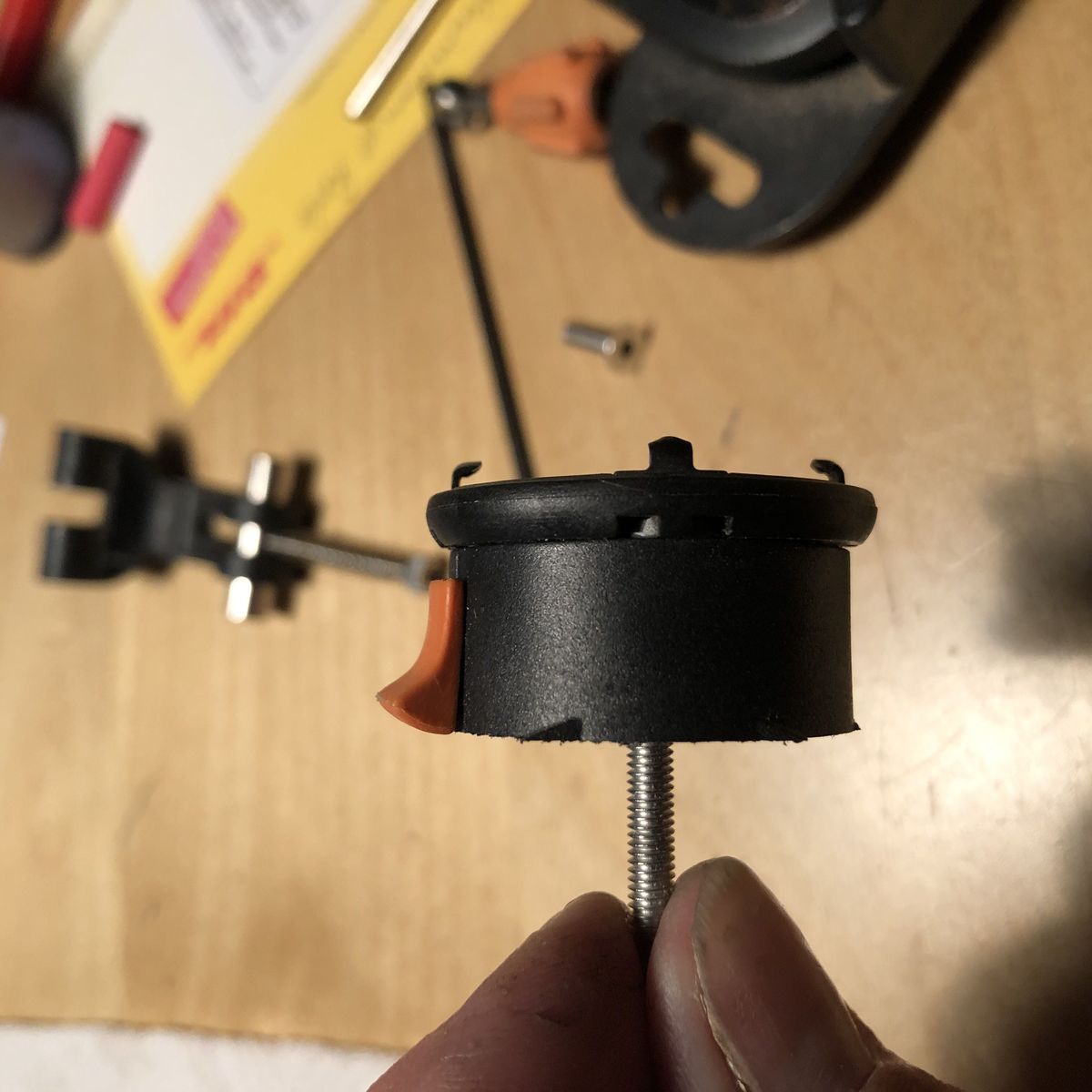 Hab die Lenkerhalterung mal über die Kreissäge geschoben. Mit einer längeren Zentralschraube und einem noch zu fertigenden Spacer werd ich das Teil an dem Gunnar sein Geraffel spaxen und dann mal schauen...