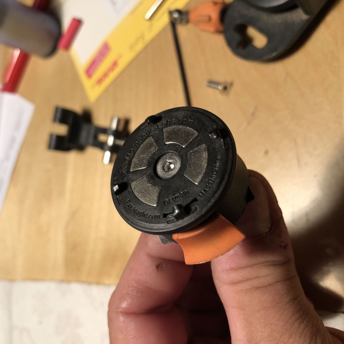 So habe mir eine Handyhalterung für mein case von Morpheus Labs gebaut. Habe sie aus Stahlblech ausgeschnitten und abgekantet. Mangels Schweißgerät habe ich ein Stück alten Besenstiel geschlitzt und eingeklebt sowie mit kleinen Schrauben gesichert.