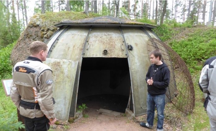Jetzt wurde aufgerüstet und es ging weiter über Single Trails, durch Dickicht und durch Wassergeläuf in Richtung Museum. Dort erwartete uns eine Führung durch die Geschichte des zweiten Weltkrieges an der Grenze zu Russland. Hier wurde auch viel Unterstützungsarbeit von Schweden und Deutschland geleistet. Ab dem Museum ging es wieder über Pisten, durch Wälder und auf Schotterwegen Richtung Nord-Ost zu unserer nächsten Übernachtung. Diese war in einer Ferienwohnung an einem schönen kühlen See. Nach dem Abendessen, der anschließenden Sauna, war dies eine gelungene Abkühlung.