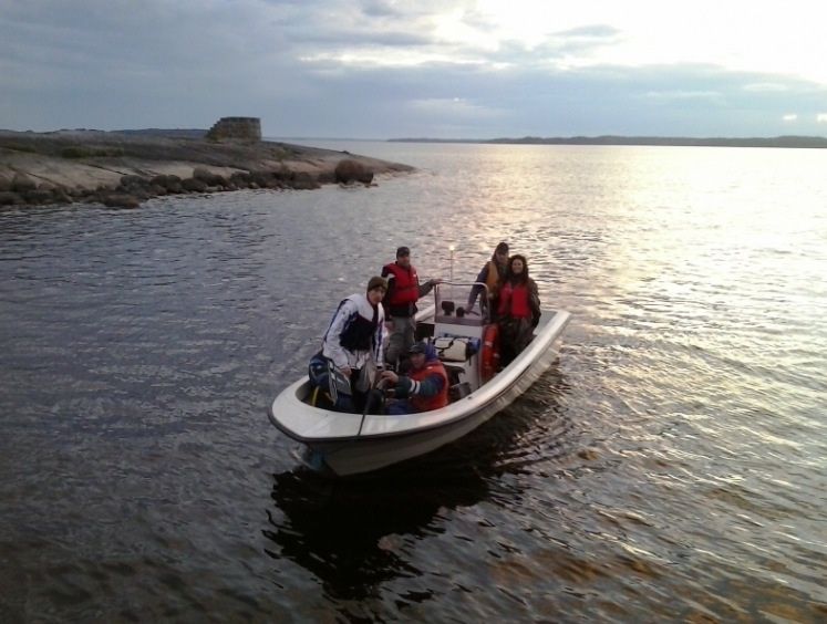 Der Weg zur Insel führte uns auf den ersehnten Sandpisten durch die wunderschönen Wälder Finnlands. Wir fuhren mit unseren Dickschiffen über stetig wechselnden Untergrund, was dass Fahren ziemlich anspruchsvoll gestaltete. Am Schiffssteg angekommen war einiges für die Nacht zu verladen. Ein Abendsnack und das komplette Frühstuck sowie alles was zum Übernachten benötigt wurde musste verladen werden. Der Weg zur Insel wurde mit zwei Motorbooten zurückgelegt. Die Aussicht und das Panorama, das uns geboten wurde war unbeschreiblich. Unser Ziel war eine Insel mitten in der Ostsee direkt an der russischen Grenze. Hier angekommen waren wir von der Location völlig überwältigt. Die Nacht war einfach klasse.