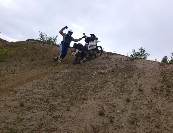 Ein Highlight war dann eine Sandgrube im finnischen Wald – im Grunde ein fantastischer Offroadspielplatz. Innerhalb von wenigen Minuten waren Boxer und KTM in Reih und Glied eingegraben und standen für ein Gruppenfoto bereit. Nach dem Ausgraben wurde noch reichlich Tiefsand gesurft und Manuel und Simo versuchten sich an Tiefesandsteilhängen. Zahlreiche Fotodokumentationen und Filmminuten kamen so zusammen.