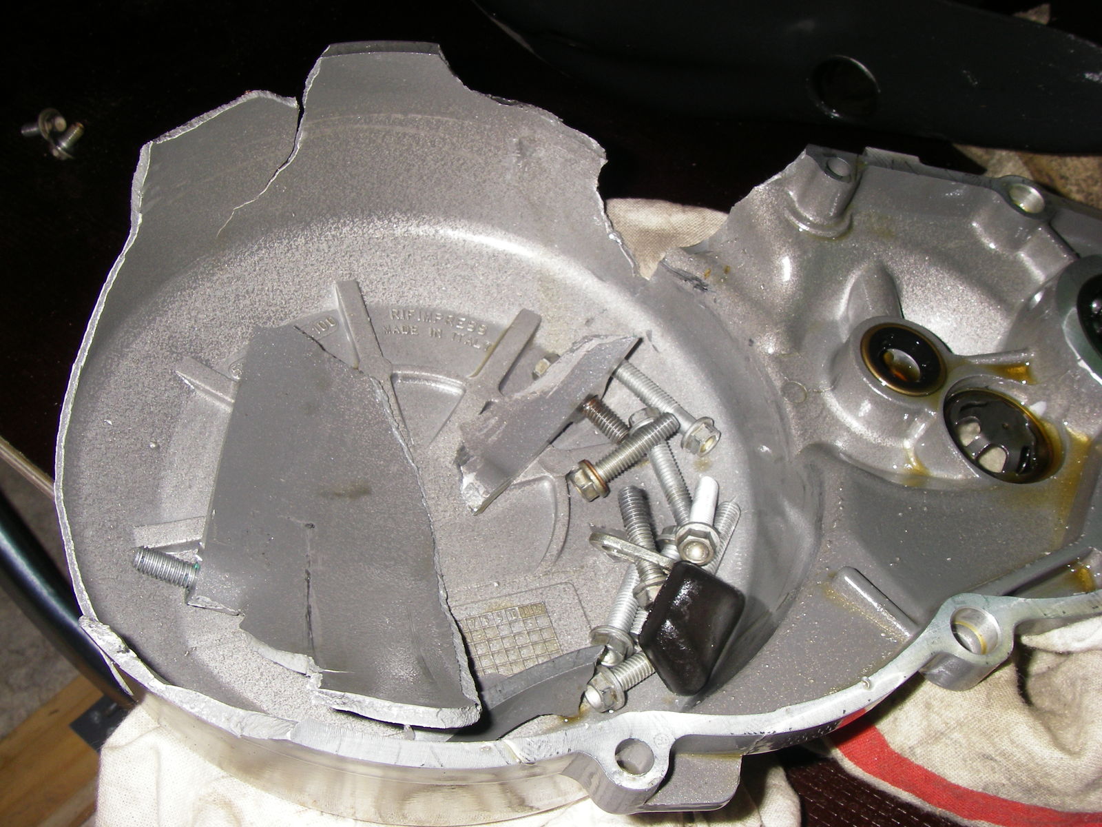 Hat dabei auch gleich den Kupplungsdeckel geschrottet...