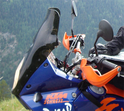 Ich fahre in der schönen Jahreszeit mit dem KTM Windschild und in der kühlen mit dem Cee Bailey's Windschild. Dies ist für mich das Beste.