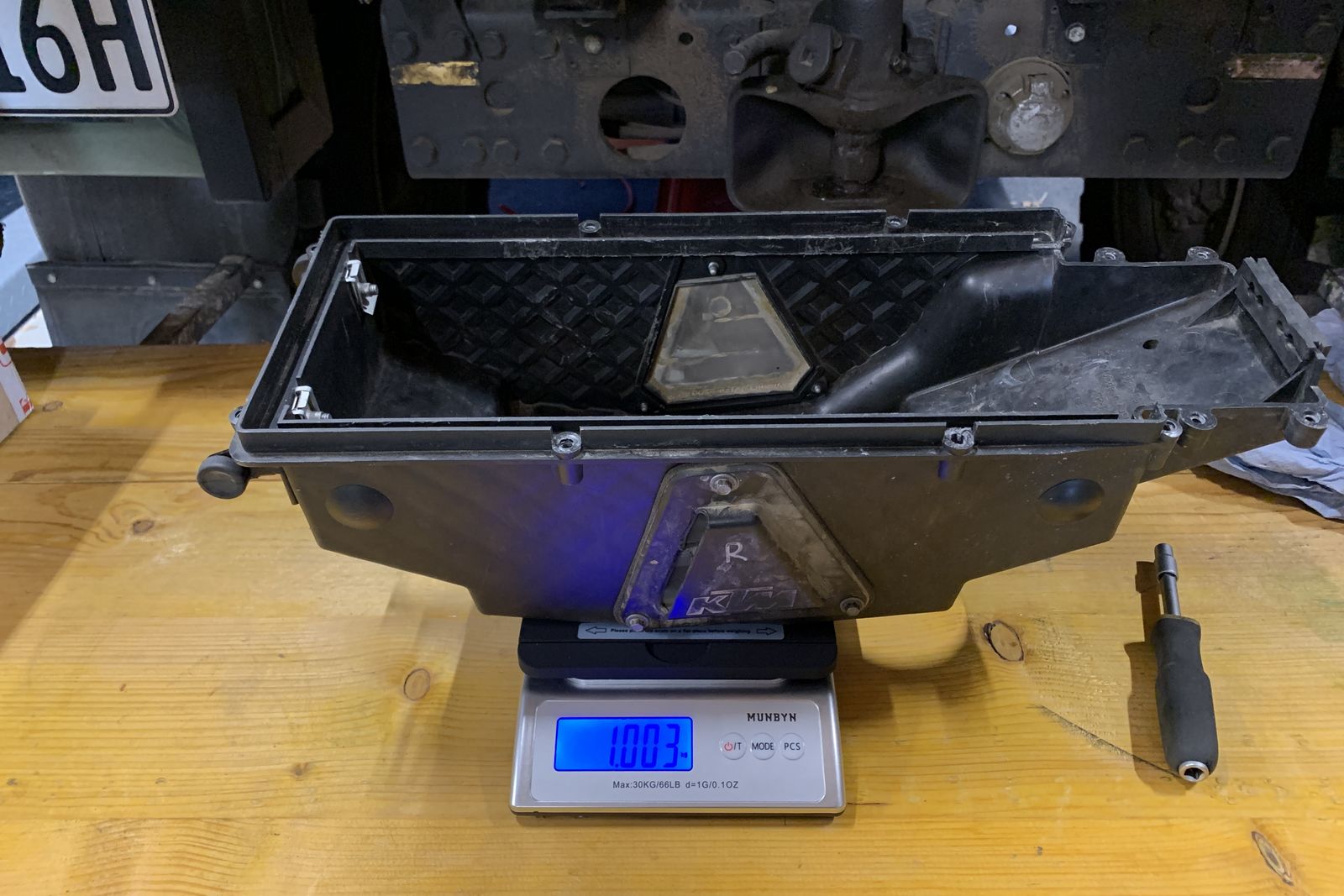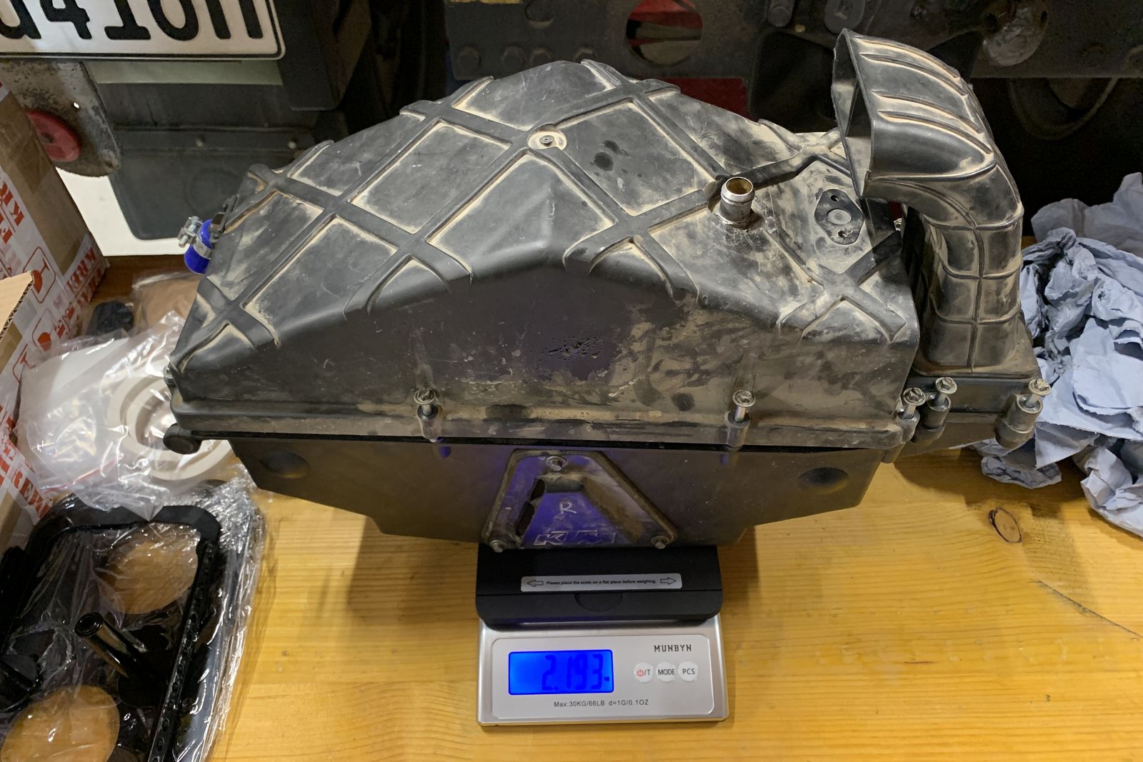 Die Platte für die Ansaugung, auf der der Luftfilter befestigt wird wiegt aber auch was.