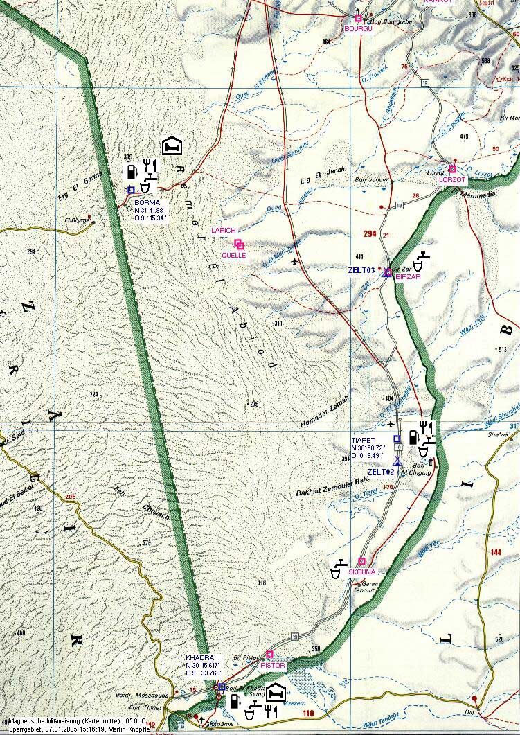 Für Borj El Khadra brauchts keine Karte, das ist der südlichste Punkt Tunesiens. Am Dreiländereck Algerien/Tunesien/Libyen.