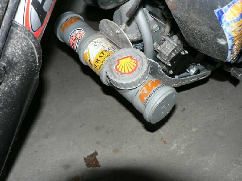 Fornix - man nehme ein Verzinktes 4 " Rohr (außen 114 mm) mit 300 mm länge und 2 Gewinden - da kommen 2 Kappen mit Dichtungen drauf - eine wird mit Loctite die andere mit einem Splint oder so gesichert ..... fertig und mit 2 Halterungen am Moped befestigt.