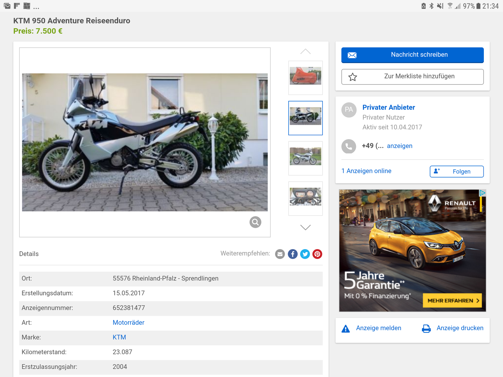 Anmeldungsdatum: 13.08.2003 Beiträge insgesamt: 5027 KTM LC8 Adv 950 S, 2003 → 107.000 km