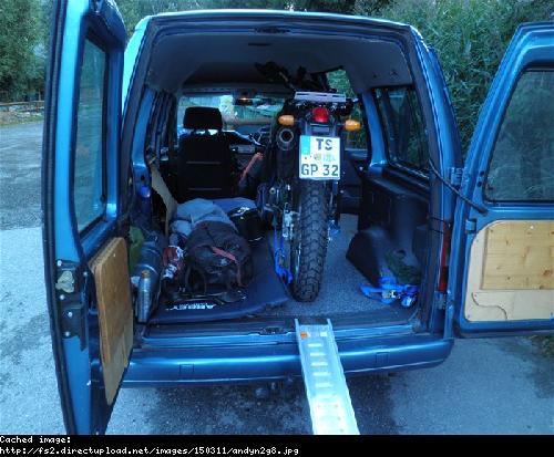 Leider habe ich das Bild mit 2 Moppeds nicht gefunden... ging aber auch mit 2 ..1x Dominator... 1x LC4...in der Mitte konnte man noch schlafen ..