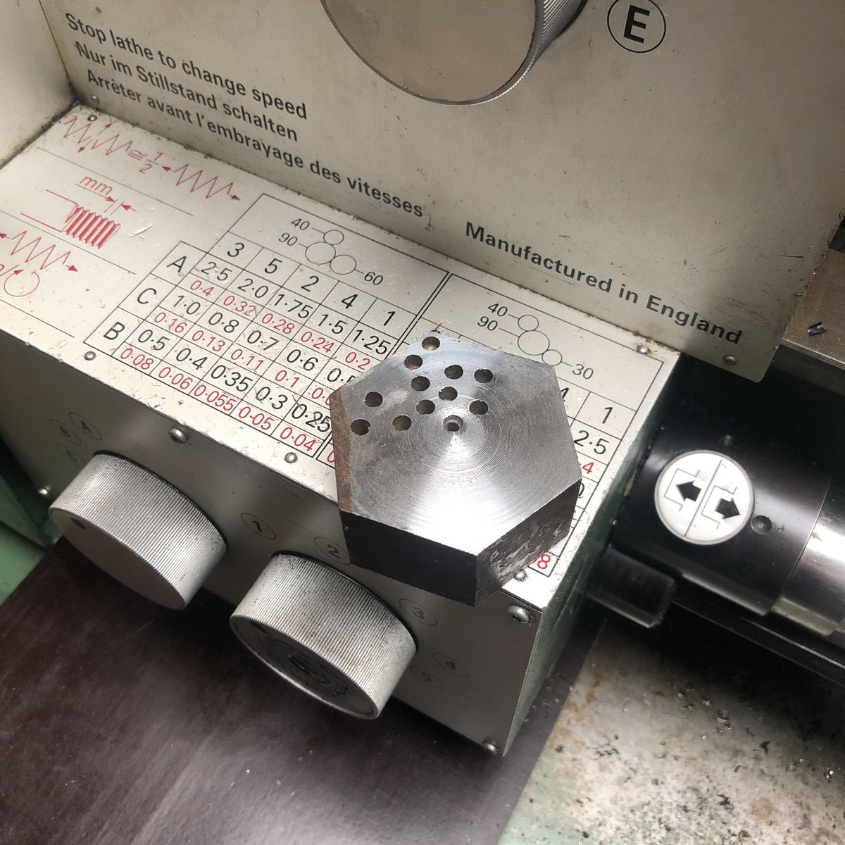 Im zarten Alter von 7 Jahren hab ich aus einem Schrottcontainer ein olles, verbohrtes Stück Sechskanteisen gezogen. Das hab ich mitgenommen, weil ich damals schon von einer Drehbank geträumt habe und dafür ja solches Material gebrauchen kann.