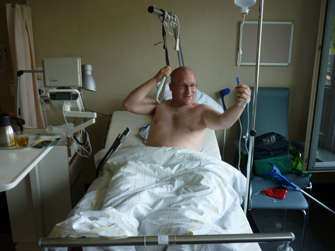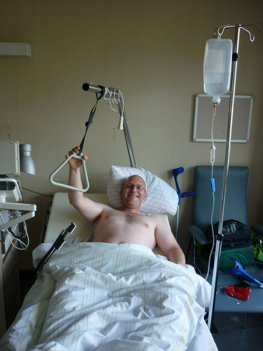 Unser Kampftänzer Milan war heute zum Knieservice im Triemli Spital in Zürich. Er residiert alleine in einem 4er Zimmer, nennt alle Krankenschwestern "Kasha" und hat für den Schlauch seines Scottoilers (die Tropfflasche) eine Stahlflexummantelung bestellt.