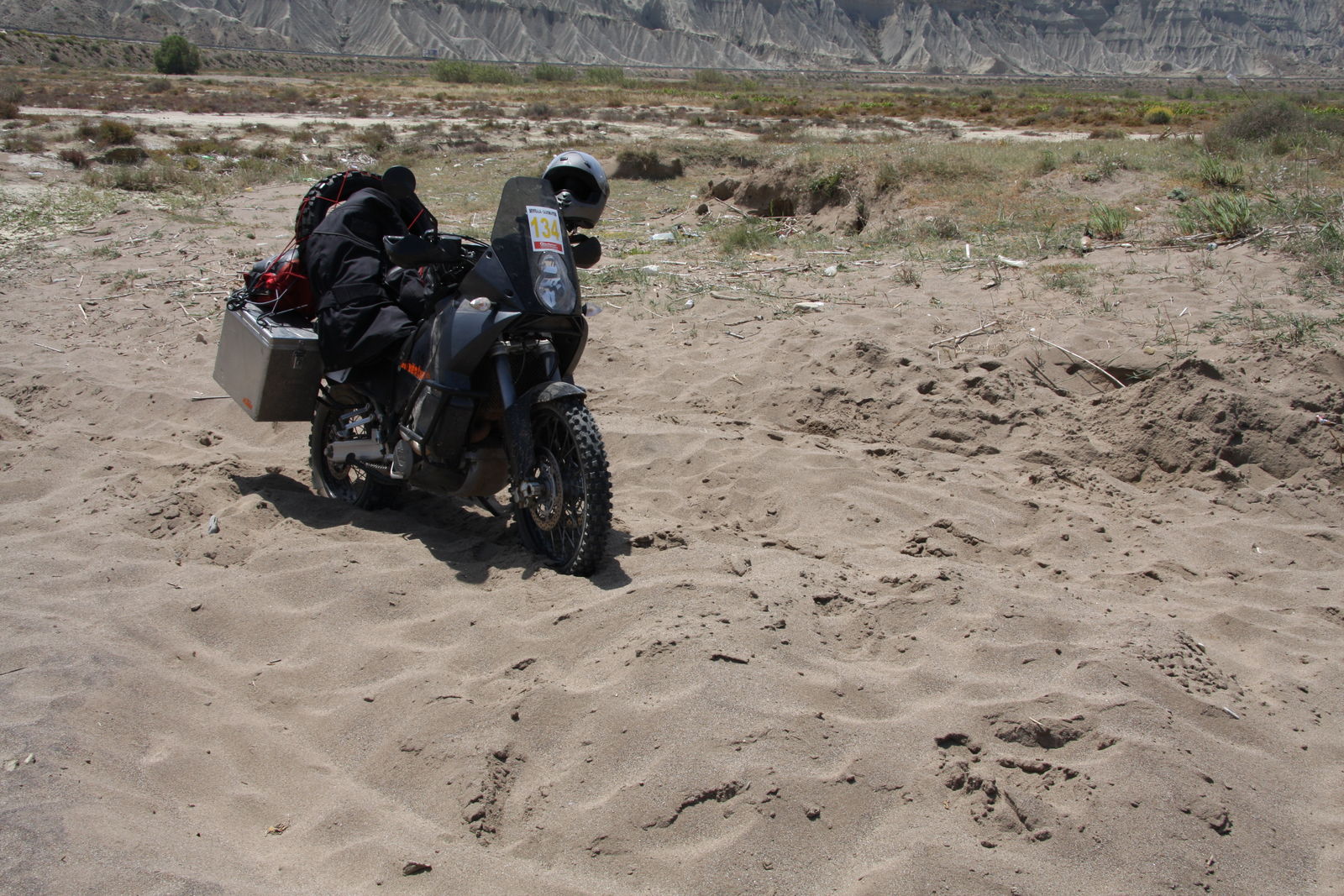 | Erste Begegnung mit afrikanischem Sand. Da wußte ich noch nicht, ob ich ohne abzuladen wieder herauskommen würde ... |