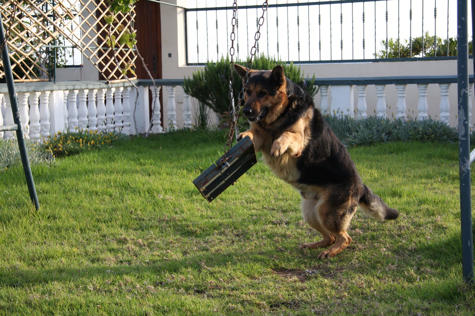 | Der große Deutsche Schäferhund, Wachhund des Hotels, Patrouille der Nacht. Mächtig, stark - und verspielt. |