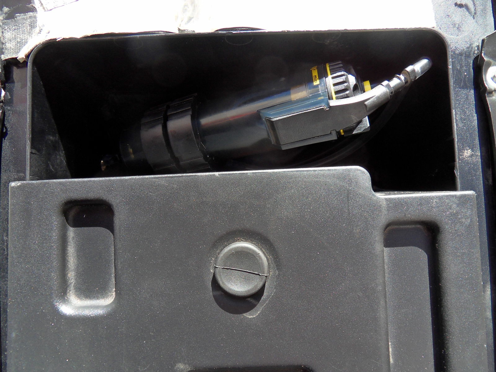 Die Arbeit dauert etwa eine Stunde. Die seitliche Bohrung für die Schlauch-Durchführung ist durch eine Plastik-Doppelwand.....also aufpassen das man nicht den drunter liegenden Heck-Rahmen anbohrt wacko !