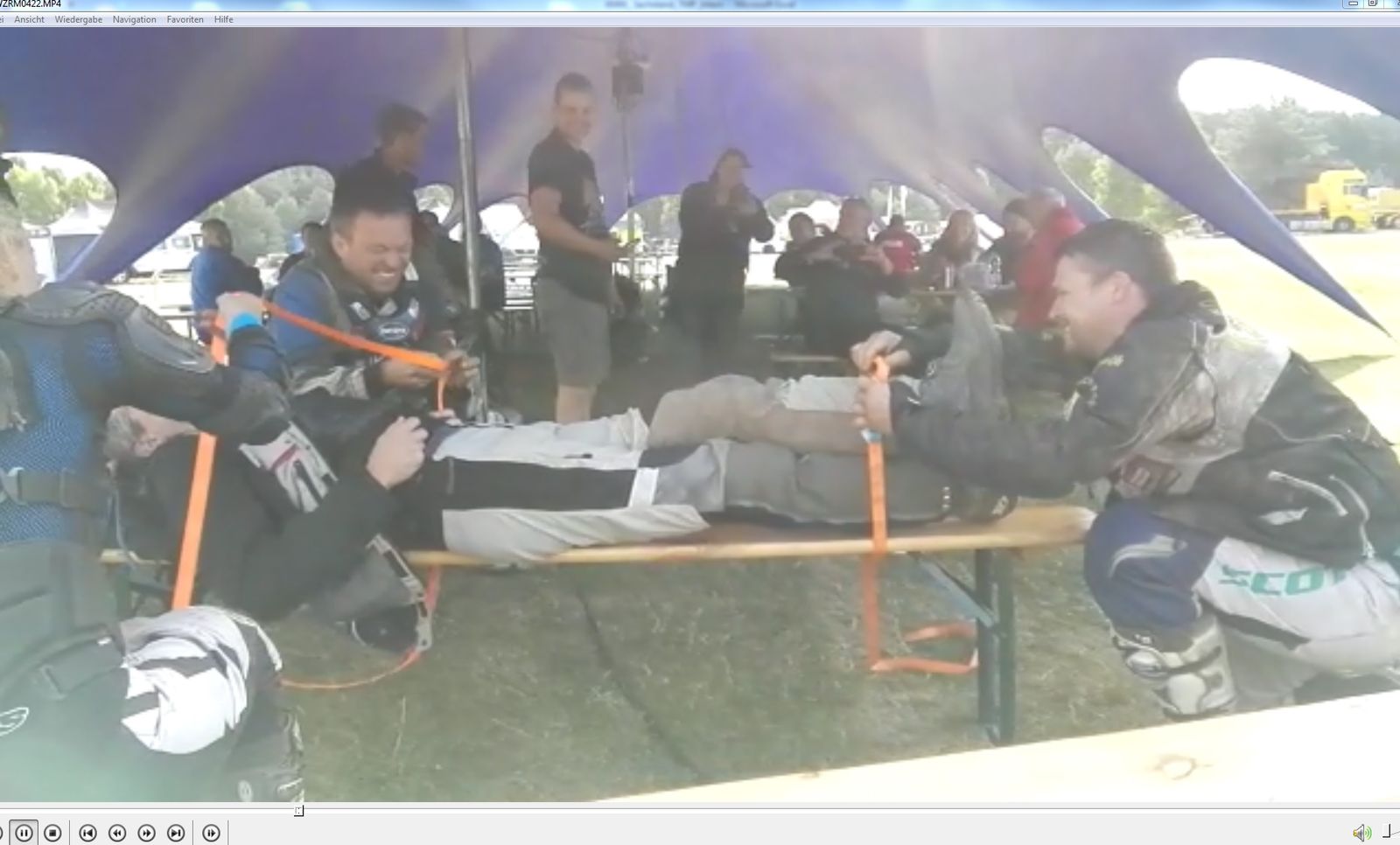 Robbe holte 2 Gurte und schon ging es los, er sollte geknebelt werden und in Richtung Wasser getragen werden.
