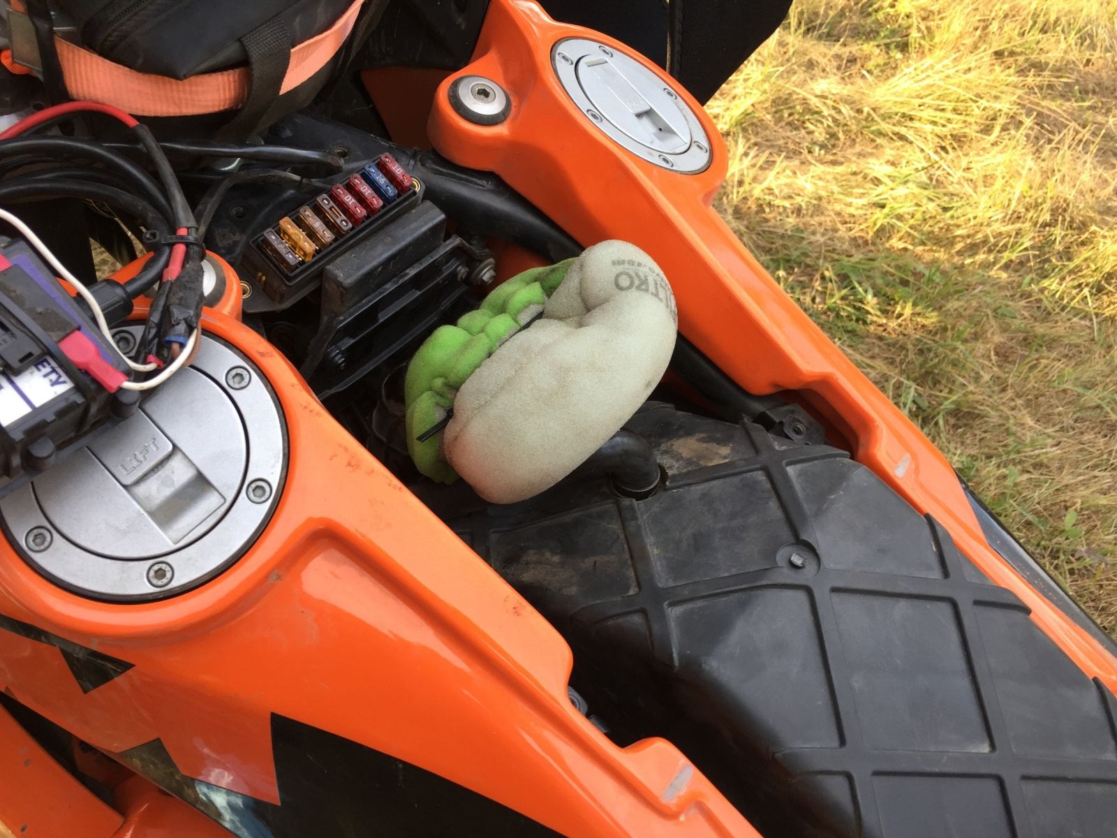 Nach einem kleinen Badeunfall. Wurde noch geschraubt wobei auffiel das mein Vorfilter aus dem DR350 Luftfilter a weng zu viel Öl beinhaltet hatte.