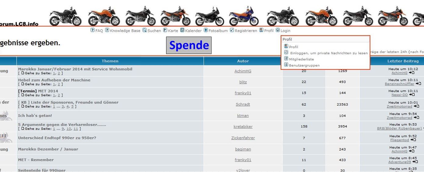 Anmeldungsdatum: 30.09.2003 Beiträge insgesamt: 7004 KTM LC8 Adv 950 S, 2003 → 156.000 km KTM LC4 620 SC, 2001 → 6.000 km