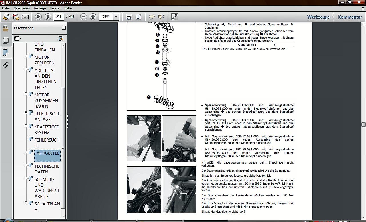 in der Anleitung lese ich oben " unteres Steuerkopflager mit einem geeigneten Abzieher vom Gabelschaftrohr abziehen".