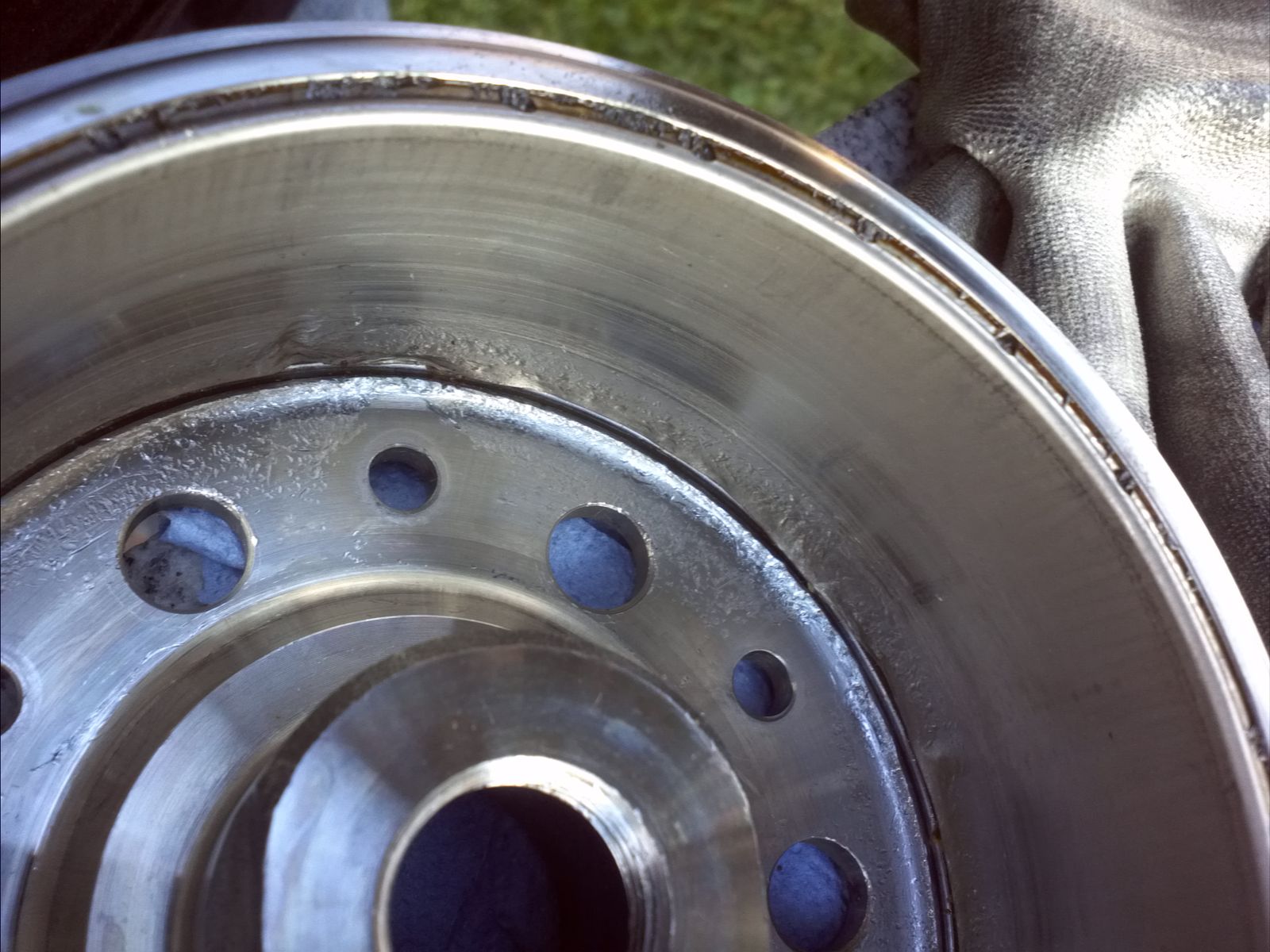 Übel zugerichtet war nicht nur die Lima, sondern auch das Polrad. Siehe Bilder unten. Die losgelösten Schrauben haben eine richtige Nut eingefräst. Irre welche Kräfte da wirken. Wir haben uns dann nach einiger Diskussion entschieden das Teil wieder einzubauen, im Herbst wird es dann durch ein neues ersetzt. In der Hoffnung, das die Unwucht im Hunderstel Bereich liegt und nicht höher.