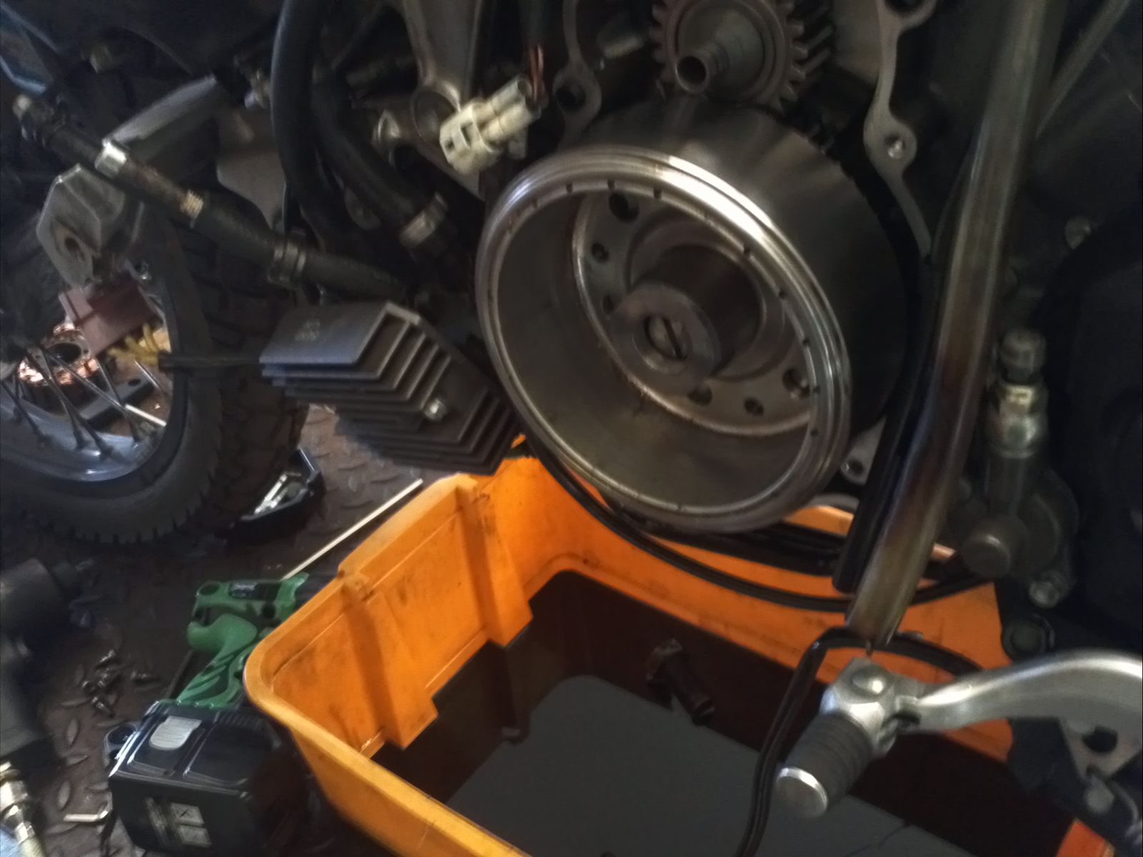 Dank eines sehr guten Freundes und Ex KTM Meisters, haben wir nun gebrauchte gute Ersatzteile gestern Abend bekommen und zu dritt die Kathie in die Mangel genommen. Nach drei Stunden (inklusive dem Selbstbau einer Poltradabziehschraube) schnurrte sie wieder.