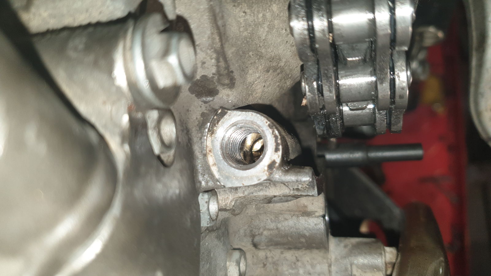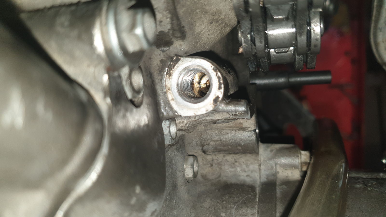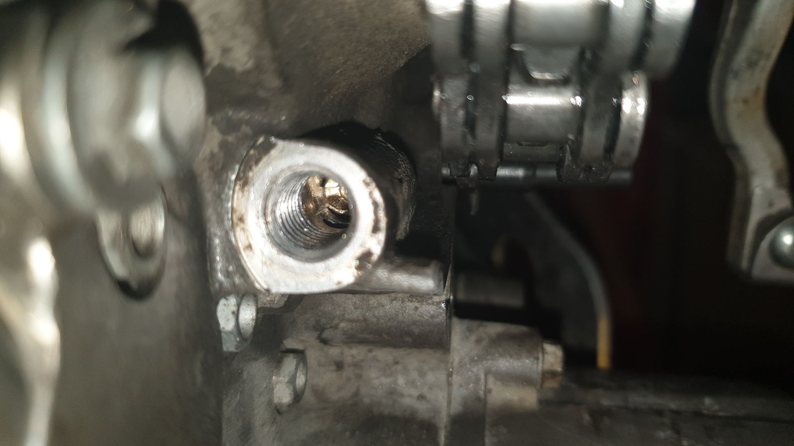 Der Schlitz der Schraube ist Geschichte. Weggebrochen. Noch Ideen wie es weitergehen könnte? Ich hab erst mal mit Druckluft ausgeblasen...